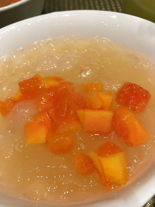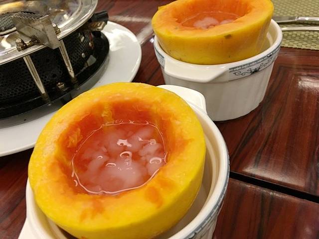 这是每人一份的木瓜雪蛤,吃了美容养颜,甜甜糯糯,今年20,明年18,作为饭后甜品不能再赞了。