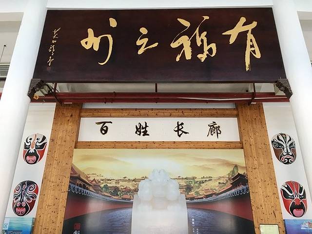 进入门口有仿制的兵马俑、脸谱,一个大牌匾介绍馆内基本情况。穿过之后里面还有“百家姓氏文化长廊”,结合民俗文化, 106间小屋子代表一个姓氏,介绍姓氏源流留长的文化。