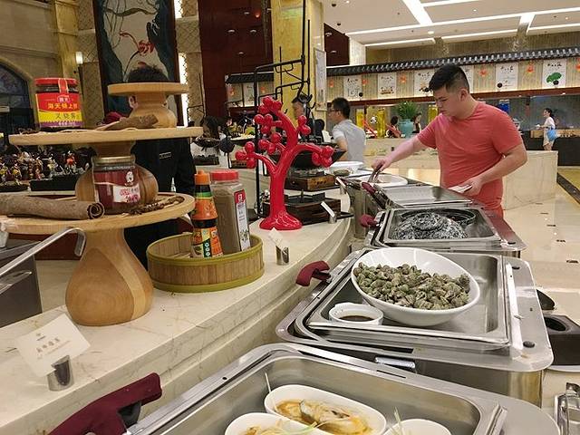 自助餐的品类还算丰富,热菜熟食、生鲜、烧烤、铁板、瓦罐、蒸鲜、刺身、水果、蛋糕、饮料一应俱全,装修豪华,吃起来特别有feel。