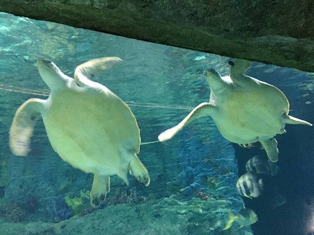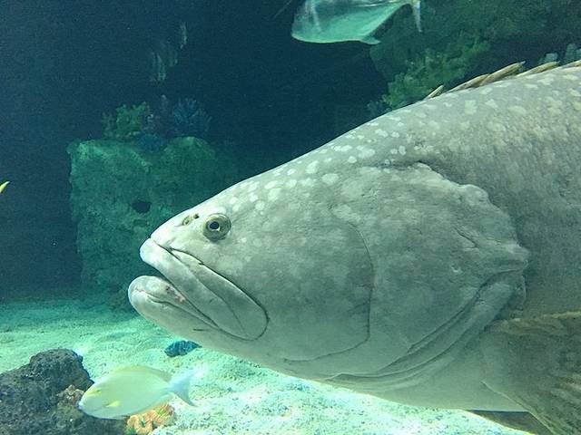 这里大海龟和超级大的石斑鱼。