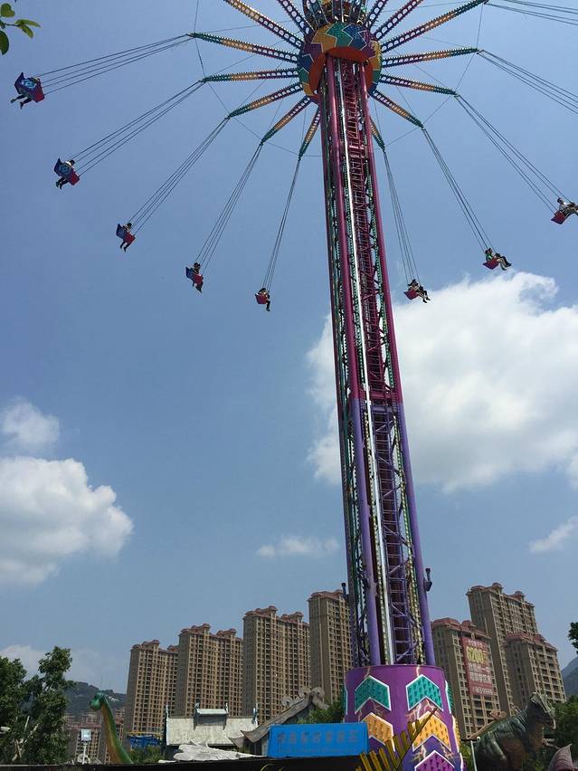 在高约30m旋转飞行,在座椅上俯瞰公园景色,好像翼龙带着你飞上天和太阳肩并肩。