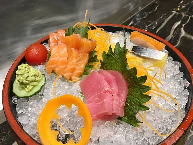 上来有一份大的拼盘刺身,有三文鱼、金枪鱼等,肉质肥嫩,加上芥末,好不过瘾,这就是三文鱼经典吃法。经典就是舌尖无法忘记的味道,根本停不下来。