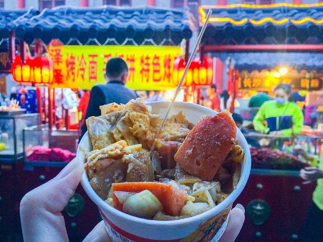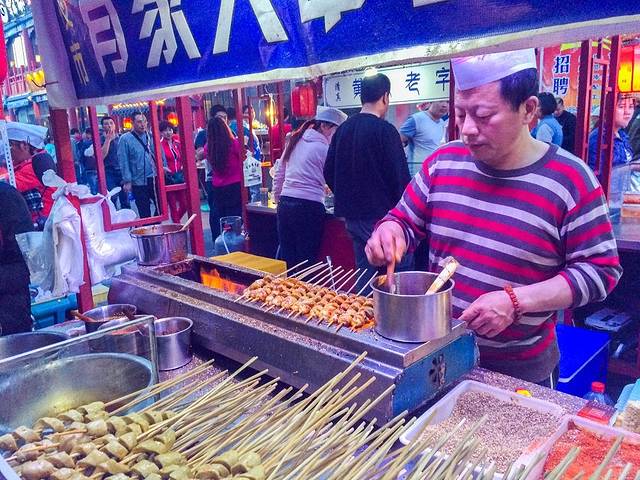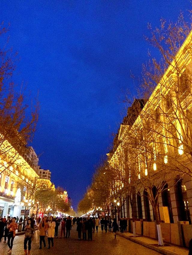 前一晚的火车颠簸,毕竟没有睡好,下午回酒店补了一觉,晚上又是鸡血满满。我们选择到位于市中心的古城用晚餐,这条古街是呼伦贝尔古城,除了能看到舞龙舞狮广场舞大妈以及流浪歌手以外还能吃到当地美食。去的时候已经是晚上八点,但天色尚很敞亮,仅存的一点地理知识告诉我别慌,这是因为这里纬度高日照时间长。我胃口比较小,只吃了烤冷面,但味道超级好,至今回想起来还会想流口水,必须点赞!