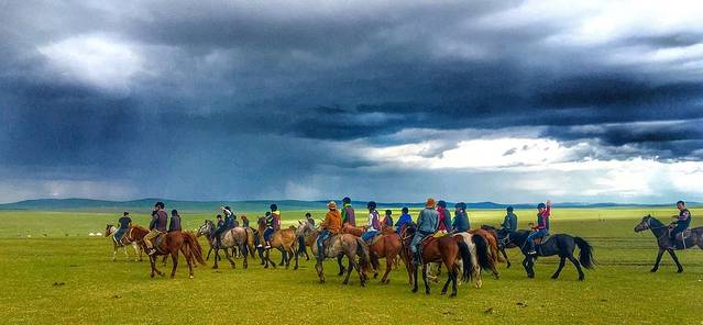 本打算换上蒙古族服饰拍照的,结果一场突如其来的暴雨搅乱了计划,30多个人挤在一个蒙古包里等雨停,倒也不失一段有趣的回忆。