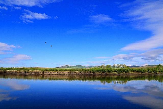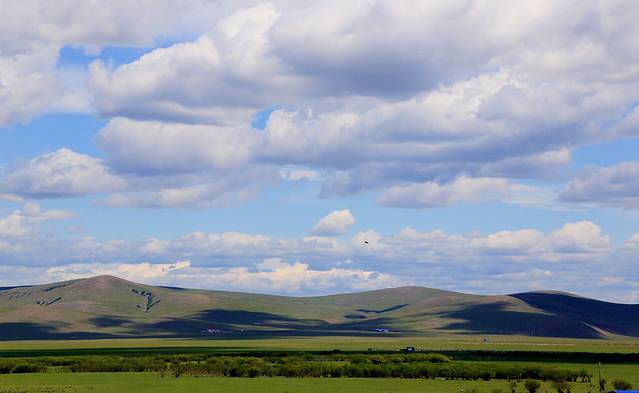 呼伦贝尔草原位于大兴安岭以西,因呼伦湖和贝尔湖而得名,是保存得非常完好的天然牧场。呼伦和贝尔其实是当地美好传说故事中的两个主人公,是一对情侣,男孩名叫呼伦,善骑射,女孩名叫贝尔,善歌舞。两人为了斩妖除魔保卫家园而奋勇拼杀,被草原人民所缅怀、纪念。今天的行程大部分在车上度过,会经过被称为“第一曲水”的莫尔格勒河最后到达边境小城室韦。这次出行是在六月初,呼伦贝尔的游客还没有像盛夏时那样多得挤不下,本以为时间太早牧草会略显稚嫩萧条,但很幸运的是这一年雨水丰沛,牧草长势喜人,我们在不用看人头的时间里看到了最美的草原。