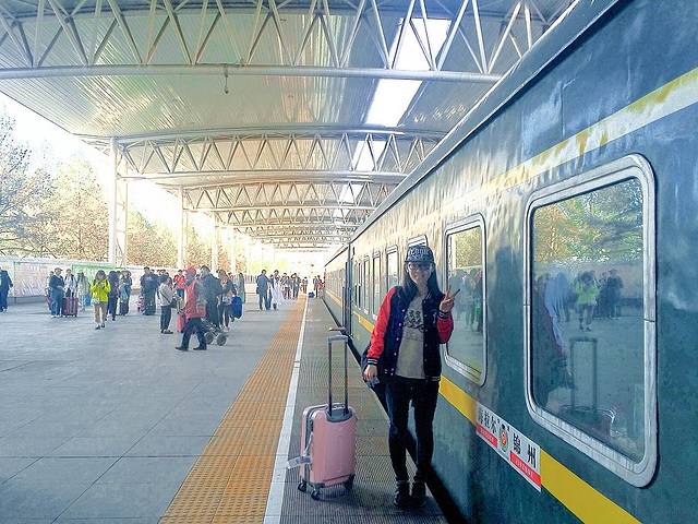 这是我第一次坐纯绿色皮的火车。以前总觉得“绿皮火车”这个词充满了年代感,文艺得不得了。大学摄影课结课的时候老师要我们上交期末作品,隔壁寝室的小伙伴就找到了杭州的一截绿皮火车拍了一组极美好的照片,那一年这种写真尚不多见,给我留下了非常深刻的印象。这次终于能坐上绿皮火车,大概只有老天知道我心里是有多激动吧。车厢里的设施竟比想象中的要好很多,整节车厢都是队里的人,我在最上铺,和领队聊了会儿天就去睡了。当夜只听得车轮碾过铁轨的吭哧吭哧声入眠,心里却无比平静。不管怎么说,第一次一个人出这样的远门,满脑子不由自主的全是天苍苍野茫茫的浪漫图景,期待不已。