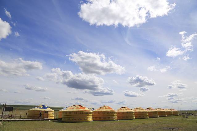 草原部落旅游如今很火爆,大致内容一是看牧民表演,二是饮下马酒吃烤全羊以及敖包祈福,三是草场骑马,四是蒙古包住宿。虽然听上去很“游客”,但对南方人来说依旧很有吸引力。在车上我问地陪,这些部落是真正的部落么?一问出口就觉得自己很蠢,果然地陪回答我,这些都是专供旅游的,并不是真正的牧民部落,真正的部落藏在草原的最深处,我们是看不见的。