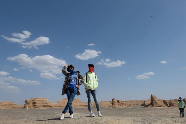 敦煌雅丹地貌,在白云的映衬下格外引人注目。当地人们俗称雅丹为“魔鬼城”。