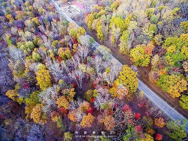 山林色彩层次分明,有深红、浅黄……只有生长在高海拔的樟子松始终保持着本色,漫山遍野还掺杂着熟透的野果。日出、晨雾、彩色树林、白鹿岛……从早到晚,景色不重样。
