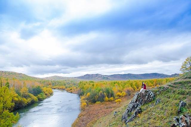 大兴安岭的秋天非常美丽,山上的柞树叶变成了红色,还有一些绿色的针叶,其间夹杂着白桦,颜色好看极了。如果你在天刚刚亮还可以看到山腰缠绕着白雾,你就会觉得到了仙境。气温是凉了些,但使人感受到极为清爽。