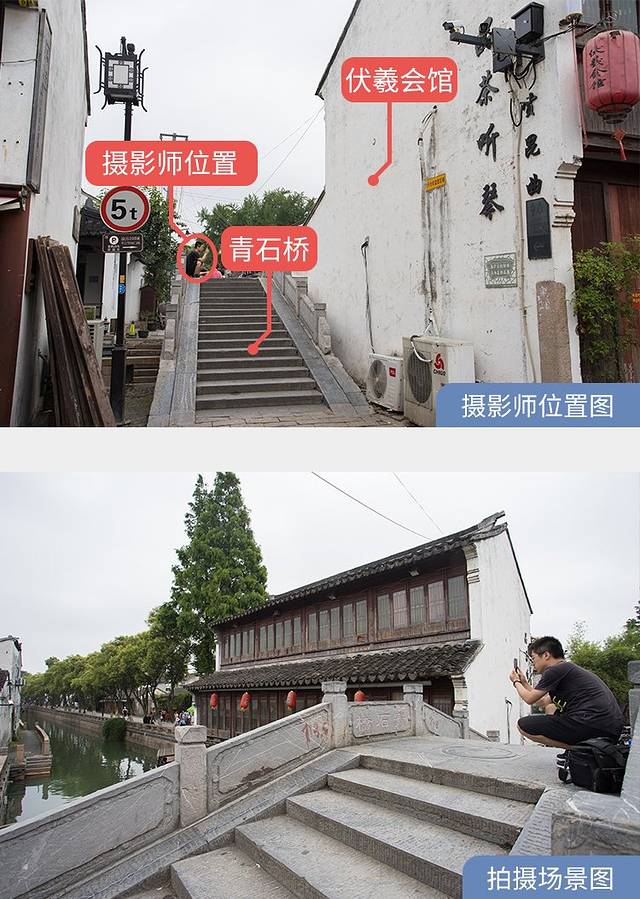 拍平江路的大场景,我们可以站在桥上拍摄。
