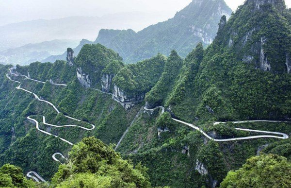 天门索道:长7455米,世界第一。索道线路斜长7455米,上、下站水平高差1279米,是世界最长的单线循环脱挂抱索器车厢式索道。
