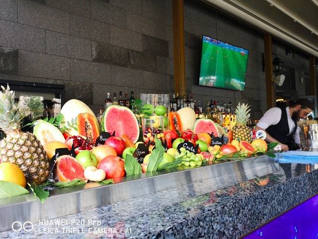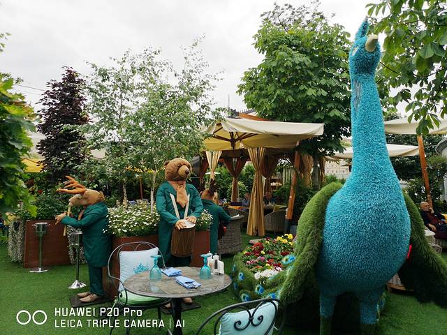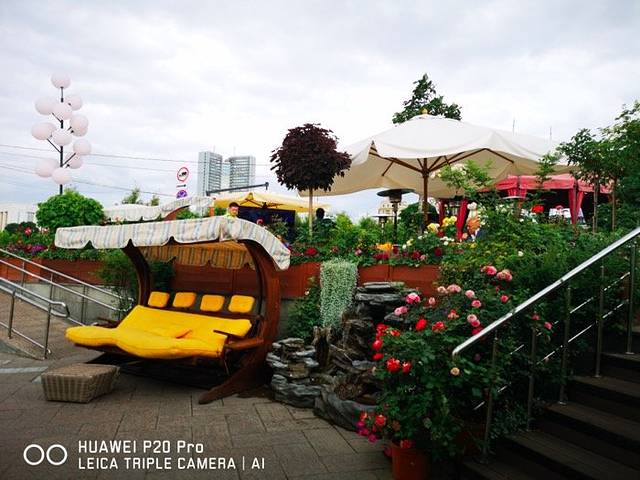 这个不知道中文名称、满是鲜花绿植的餐厅,坐落在莫斯科河的河畔,是一家海鲜餐厅。餐厅分为室内和室外用餐区,室外鲜花围绕,满眼绿植,有比沙发还舒服吊椅。
