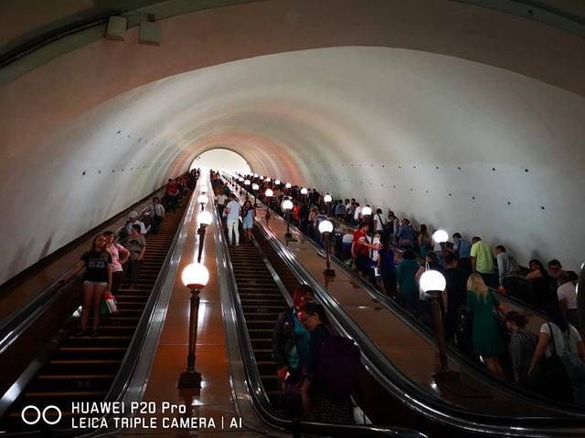 莫斯科地铁站的电梯也是一大特色,可能是因为地铁挖的深,每个电梯都很高很长,恐高症患者恐怕要全程“紧握扶手”啦。