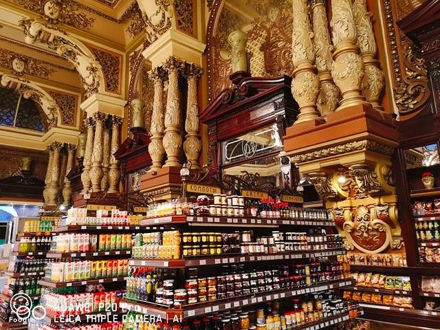 这家超级豪华的古典犹如宫廷一般的超市,名叫耶利谢耶夫斯基超市(Yeliseyevsky store)。据资料记载,超市始建于1898年,至今大约有110多年的历史,最初由百万富翁兴建,从建立伊始就一直是莫斯科的商业重地,后来经过几代的扩充和不断的发展,逐渐发展成为今天这样庞大的规模,而这豪华的古典宫廷风格,也得以保留。