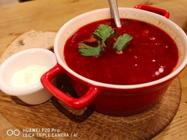 这里的餐品价格很亲民,味道却很不错,有幸吃到了著名的红菜汤,据熟悉俄罗斯的小姐姐说,非常正宗。额外点了不记得姓名的意面和土豆,都很美味。