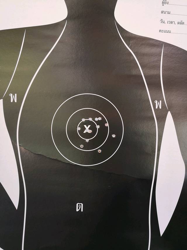 数数靶子上只有13个抢眼。某人枪法准到12发都直中原有枪眼