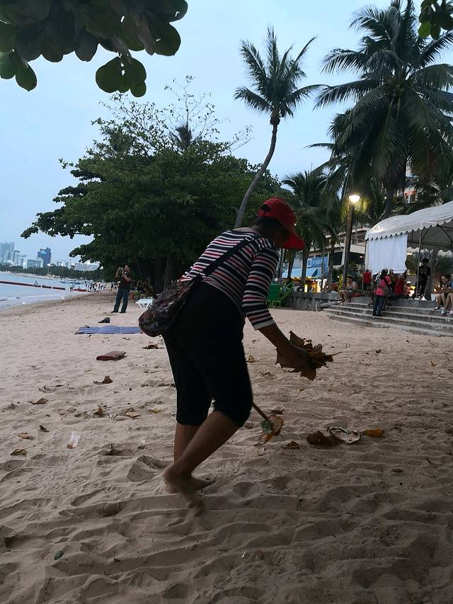 我恐高,也没兴趣这些游客项目,于是顶着烈日在海滩上饱眼福。看到泰国老阿姨在清洁海滩,唉~~泰国对海滩的保护就是随时随地。