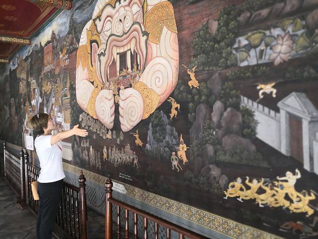 转出租车,这次被宰了一下,也没办法,不打表,不给收据200泰铢4-5公里。一场马杀鸡没有了。到了大皇宫,走马观花一下,就是这个猴王神故事壁画还比较好。
