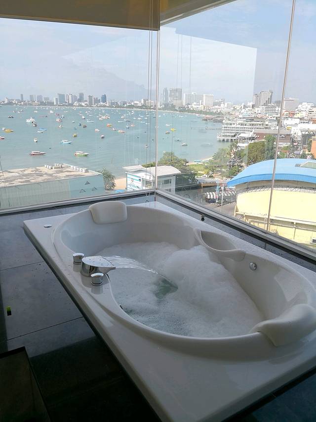到了酒店,这个景色好,晚上泡着看夜景