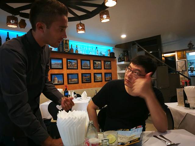 午饭那个鸡饭份量太小,饿了。一路寻找值得进的餐馆,寻到little italy。门口揽客的意大利小哥还真帅。就是不太地道,问他哪里马杀鸡好,竟然告诉我他隔壁的最好。我去,这种推荐我是肯定不会去的。于是假假地和他客套一下,精神上鼓励他的友善