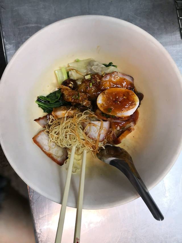 面上来绝对赞,鸡蛋,叉烧,乳猪,青菜,混沌,面。量不大,但绝对够丰富。这一碗吃完绝对想要吃第二碗的。绝对应该成为网红店,不过建议打包,堂吃实在是太热,太热