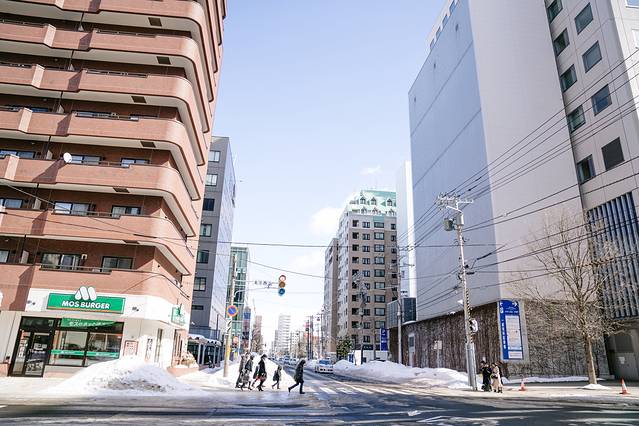 北海道 大学出来后步行去吃饭,用谷歌地图导航想去吃烤肉,然而吃烤肉的地方都离的好远 只好瞎走,希望能在路上看到烤肉,但是路上很多店都没有营业,只好走回JR站附近。