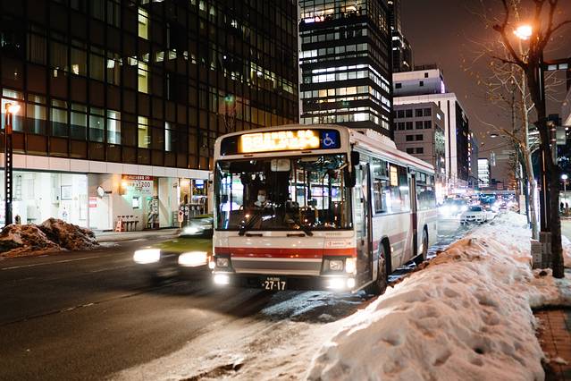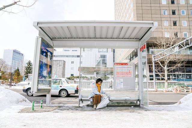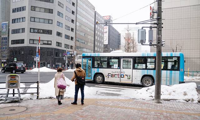 询问酒店能否帮我们Call的士,酒店工作人员告知我们的士都停了,想着只能坐公交去JR站了。这时的我们还非常天真的以为到达JR站面前的暴雪问题就能迎刃而解,因为我们今日的行程是去 洞爷湖 游玩后再去 函馆 ,两个人在暴雪中等待5分钟左右终于迎来去往JR站的公交。