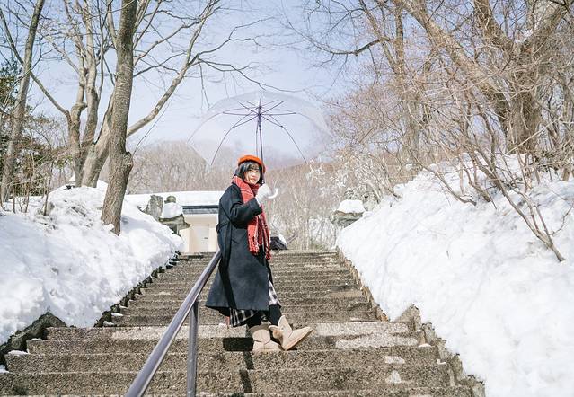 “汤泽”是 日本 战争的旧址名称,就如同 中国 的 赤壁 。这算是一个意外的景点,因为一开始并没有想过刻意来。但只要住在这附近的酒店,应该都难免会路过这里。汤泽神社在去地狱谷必经的一条路上,进入神社的阶梯都结冰了,很容易摔跤。并且神社内空无一人,这是 登别 我认为最适合拍照的地方。