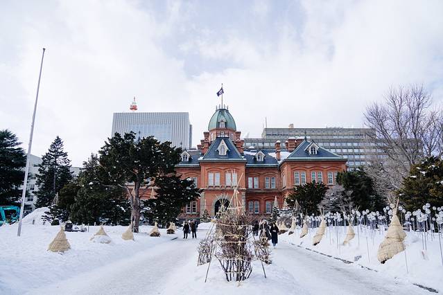步行去 北海道 大学的路上偶遇 北海道 厅旧本厅舍,红砖建造的 巴罗 克风格欧式建筑,白雪红砖真的超级搭啊,但是年初应该是休馆了,并没有进入,门口拍了照就撤了。