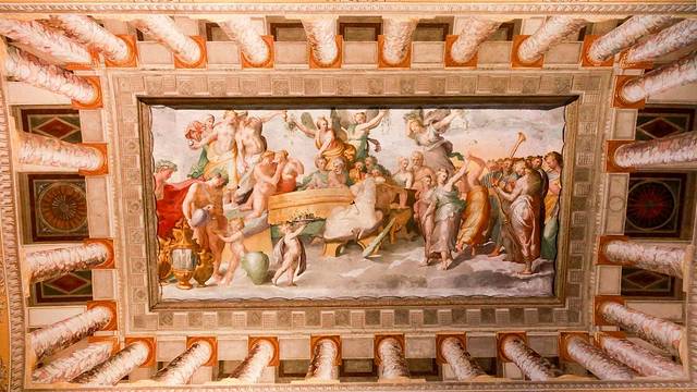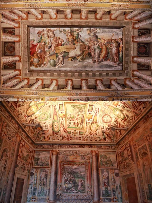 你能想象得到这是画在平面天花板上的吗?阴影和透视强行“造”出了一层楼有没有!