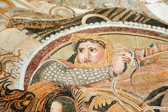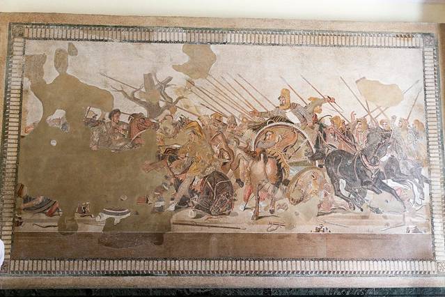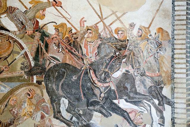 当时豪宅别墅里残存的50万块 马赛 克拼接壁画《 亚历山大 与大流士三世》,讲述的也是 希腊 史上最伟大的大帝 亚历山大 一世和波斯王大流士之间的战争。