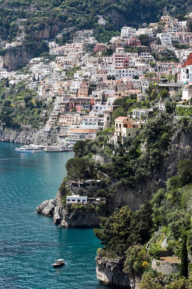 通常意义上来讲,是起始于 索伦托 古镇、包含 波西塔诺 和阿玛菲小镇在内的57公里海岸线。S弯又细窄的山路上停满了旅游大巴和摩托车,游客很多。来之前 意大利 的朋友告诉我说“ 阿玛菲海岸 会堵车”,没想到4公里可以开26分钟的这种堵。
