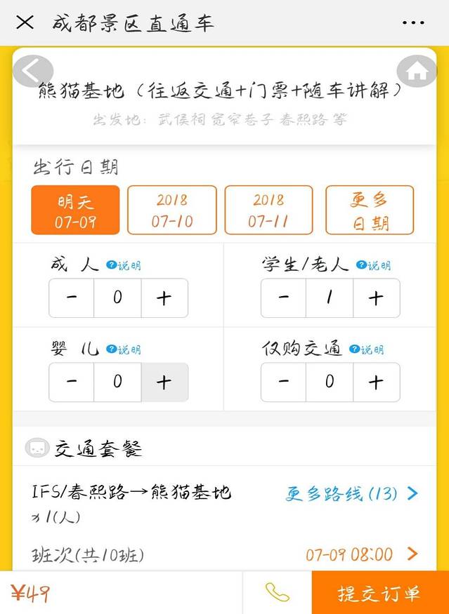 在春熙路IFS下面有景区的直通车,可以直接到达熊猫基地,一般50分钟就可以到达,所以我们选择的交通出行工具可以选择这个直通车