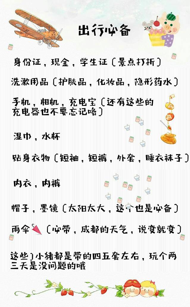 出发前准备工作接下来我要说的是一个重点,那就是我们出行前的准备,这个准备工作重中之重,宝宝们千万记牢了,下面是我为大家做好的一些准备。