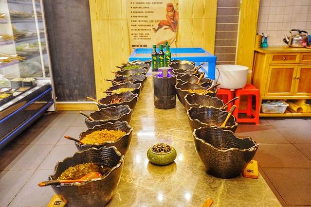 太多调料,我和闺蜜去的时候都惊呆了。我们点了几个店员推荐的招牌系列—牛肉,占灵子脑花,兔腰子,千层肚,特色小吃,还有佐冷馋的精酿和自制饮料。