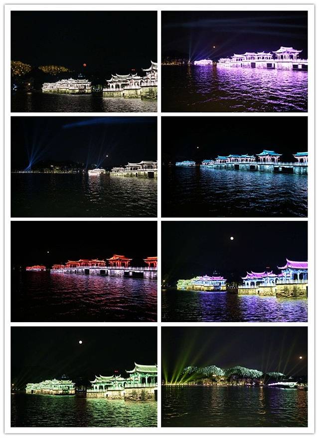 城楼对面就是广济桥,我们7点半来到发现江边已经站了好多人,一问才得知今晚8点开始灯光表演,时长15分钟,我们于是站在有利位置等待精彩的灯光表演。