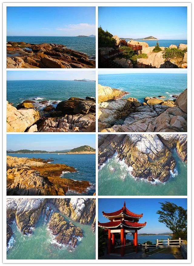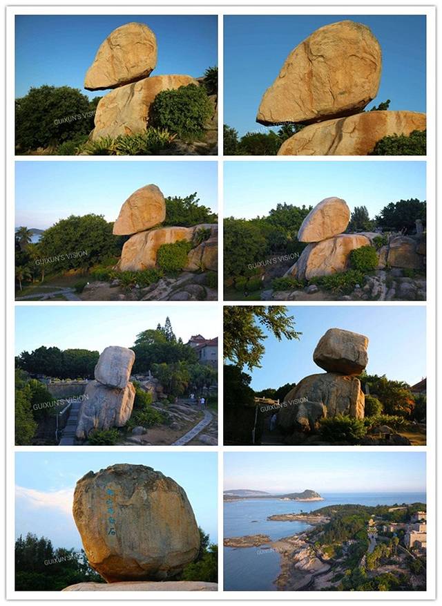 从酒店沿着南门湾海岸步行1公里左右到风动石景区后门,60元门票,学生证半价。我们在景区走走看看1个多小时吧,下午6点后前门是关的,必须从刚才的后门出去。风动石是东山岛的标志,在景区走走看看也是不错的。