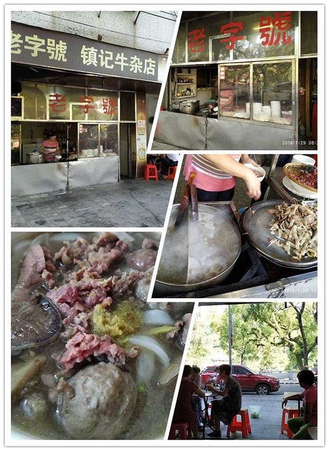 女儿和闺蜜在酒店吃早餐,我和老婆走路去到西湖边的老字号镇记牛杂店吃牛肉。