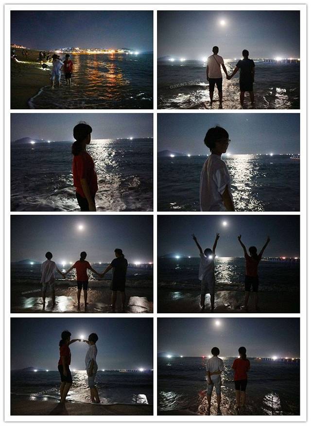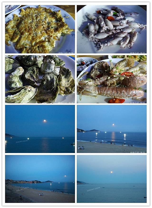 在公寓楼下的大排档吃海鲜,就在海边,一边看着刚刚升起的圆月,海风迎面吹来,吃得格外爽,虽然价格有点小贵,后来第二天中午开车到附近的快活林酒家吃海鲜更实惠些。吃过海鲜晚餐后就在海边散步挺好的。