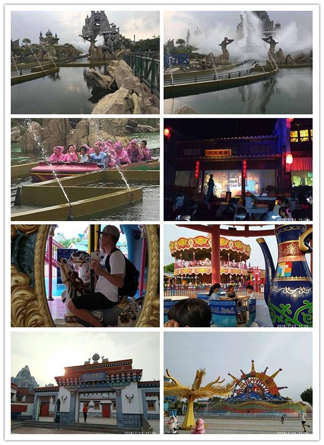 从酒店开车24公里到方特的室内停车场,门票要提前一天订。由于是周一,所以人不多,基本上排队不会超过5分钟,天气热,所以要自备多些水,园内的饮料较贵,中午饭我选择在童话餐厅,因为这里有表演助兴。不知道是不是周一人少的原因,所有表演项目都是在上午的,幸好我们一进园就先去看表演,下午玩机动游戏,一天都在园里度过。感觉汕头方特比厦门方特好玩些。