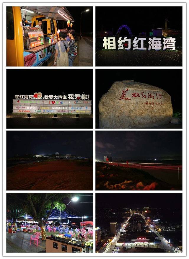 从酒店走路去红海湾遮浪区海滩散散步,由于是晚上,看不太清楚环境,就随便走走看看。