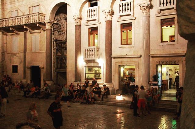 从 阿姆斯特丹 飞行2小时到 斯普利特 。入关很快,除了我们需要海关戳章,其他的人直接拿护照扫一眼就走了。出了机场后,在左边有卖电话卡的地方,七天不限流量的卡,85库纳。如果想要打电话的话需要额外充值进去,网速还可以。出来后的右边有shuttle bus,从机场到市中心,30库纳一个人,时间不固定,我们大概等了半个小时。旁边还有一些租车行,例如Eurocar。从机场到市中心大约40分钟,由于飞机的延误,我们到市中心的时候都晚上7点了,天也差不多黑了,又拖着行李,所以直接打车去的酒店,50库纳。Corner Hotel是一家四星级酒店,两晚1275库纳。条件不错,不过早餐味道不怎么样 从酒店走路去老城7分钟路程,还是很方便的。收拾一下,我们就出门去了老城,由于是周六,老城非常的热闹,人也很多。