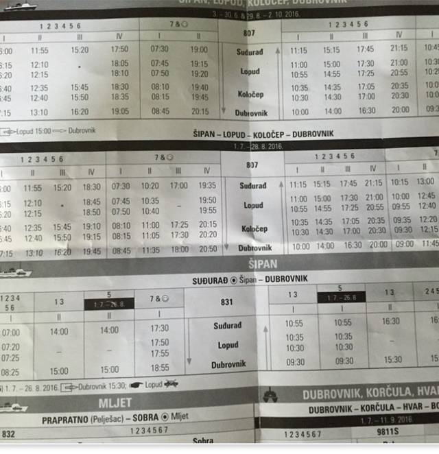 今天计划的是白天去Lopud岛游泳,傍晚前回来去山上俯瞰整个老城和看日落。结果岛了码头,才发现事实是残酷的。船在10点就出发了,我们10点15到的售票处,下一班要下午2点了😭为了满足我游泳的愿望,我们决定买下午2点的船票,单程23库纳。我们两个人往返96库纳。附船时间表👇