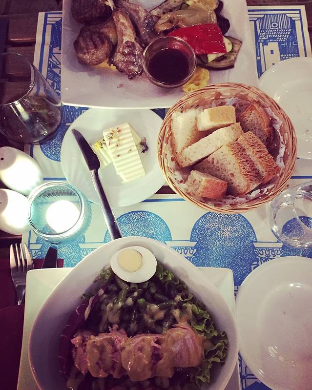 有些餐厅是在巷子里,桌子小小的。晚餐依然是在网上上找的,LAJK虽然排名不错,但是味道很一般。点的金枪鱼 沙拉 和烤羊排,人均170库纳。羊排有点贵