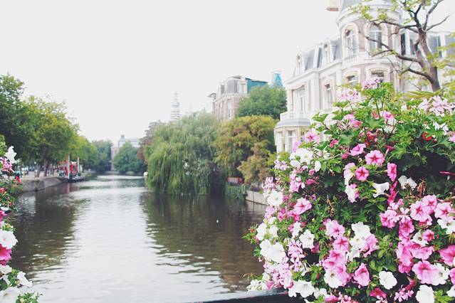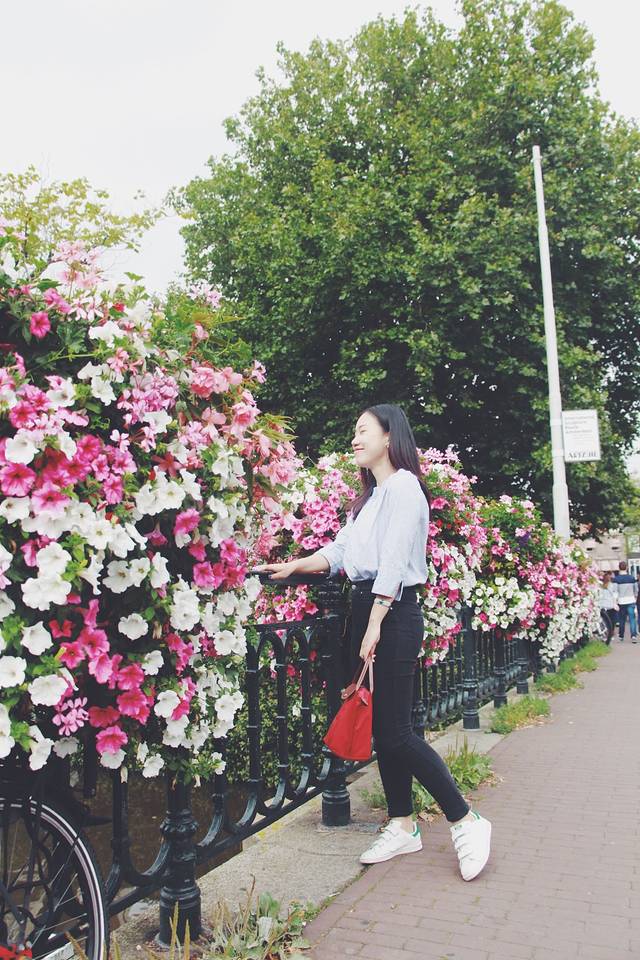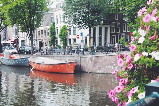 吃完饭后,我们又朝着中央火车站方向走。在这个餐厅的旁边有奢侈品一条街,大部分的品牌都有。顺着路走回,我发现 阿姆斯特丹 和我之前想象的很不一样。整个城市有很多河道和花卉。据说 荷兰 人非常的喜欢花,整个城市随处可见。自行车也是 荷兰 人的必备,人手一辆。