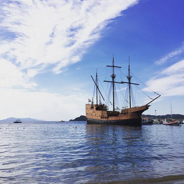 吃完饭在古城内闲逛,思索明天该干什么。我发现古城内有很多一日游的出海项目,便去咨询了一下。最受欢迎的是一个 三岛 游,250库纳,包含接送、午餐和喝的。一般早上9点半出发,下午6点回来,去Lopud、Sudurad、Kolocep三个岛。在Lopud岛停留的时间最长,3个半小时,可以游泳。我们只对Lopud岛的游泳有兴趣,所以决定明天自己前往。