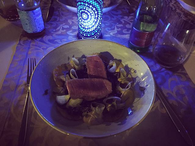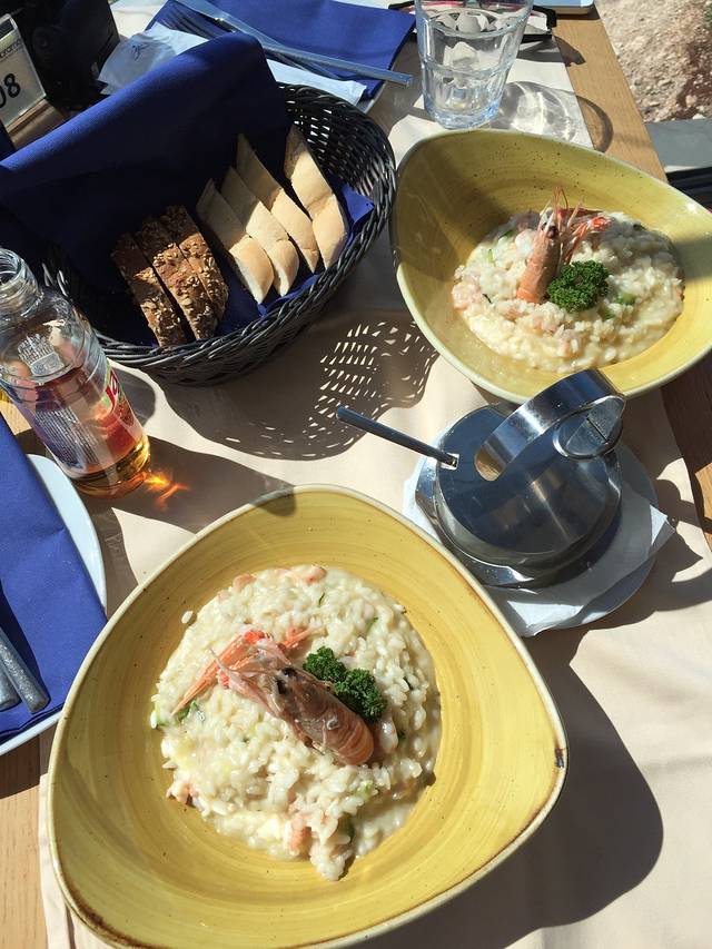 山顶有一家餐厅,分室外和室内。我们去的时候室外没有靠崖边的座位了,所以选了室内的座位。我们点的海鲜饭,味道总体不错,价格也合理,米饭有一点点夹生,人均140库纳。