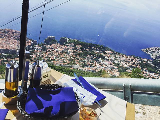 因为下午两点才去Lopud岛,所以又改在现在去山上看全景。需要注意的是在 杜布罗夫尼克 坐公交,虽然站台上有时刻表,但是并不准时,大部分的时候都会比时刻表上的时间提前。所以尽量早一点去公交车站台等车。Cable缆车需要买票,没有学生票,120库纳一个人。大约5分钟就到山顶了。山顶俯瞰君 临城 真的非常漂亮!