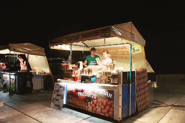 我狠喜欢整个老城的氛围,悠闲自在。大部分的餐厅都满客了,所以决定吃一些的小吃。价格都不贵,每家尝一尝也不错。路边有非常多的pizza店,一块一块得卖,大概12—15库纳一块,口味有四五种,可以随意选。